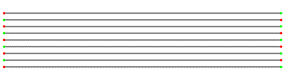 Here measurements are made with one single baseline. But on the ground, you have two measuring tapes, one as a baseline and one giving you the direction of the profile. All profiles start from the same base as indicated with the green dots and are made in the same direction. Note! The profiles do not need to be of the same length and, perhaps due to obstacles, you may need to skip some profiles. |