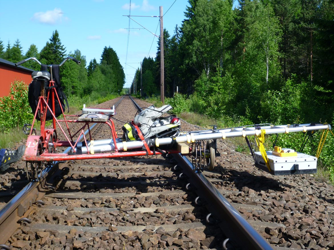 • … it is possible to do GPR investigations from a railway trolley? It is really nice to bike! But make sure you have a traffic warden as company so you can move the trolley before the trains pass.