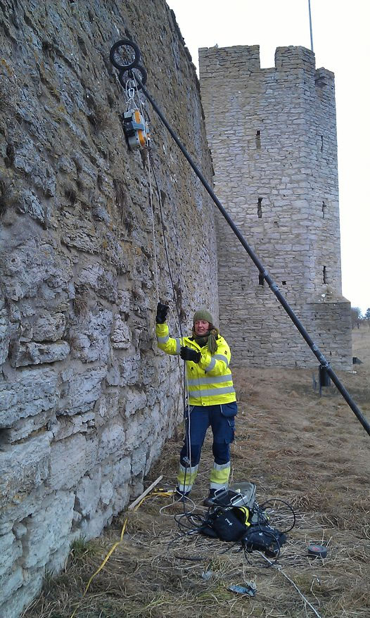 • … you can investigate huge masonry walls for loose stones? But do not try to use a sky-lift in heavy winds. It was easier to carry out GPR measurements using a home-built lifting device instead.