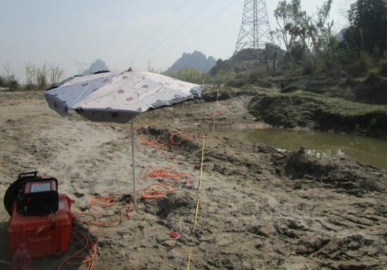 As the investigation area was extensive and detailed information on the geological setting was needed to larger depths (around 20-50 meters), the ABEM Terrameter LS 2 was used, in 2D mode (so called ERT, Electrical Resistivity Tomography). The ABEM Terrameter LS 2 solution offers the possibility to measure IP (‘chargeability’ of the ground) at the same time as the resistivity.